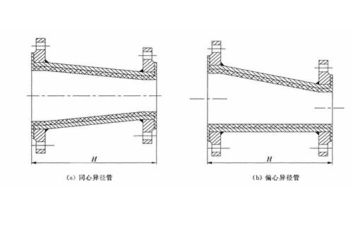鋼襯塑變徑管尺寸測量為大端法蘭端面襯塑層到小端法蘭端面襯塑層的距離,如下圖所示:
